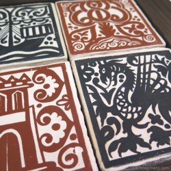 Placa de arcilla roja modelada y decorada.