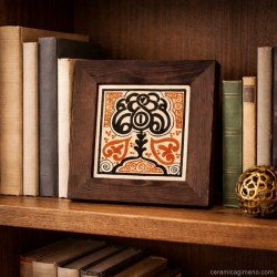 Azulejo decorado en dos colores cerámicos y cocido a 990ºC.